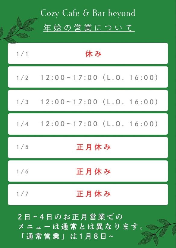 28日の営業開始時間を変更いたしました。